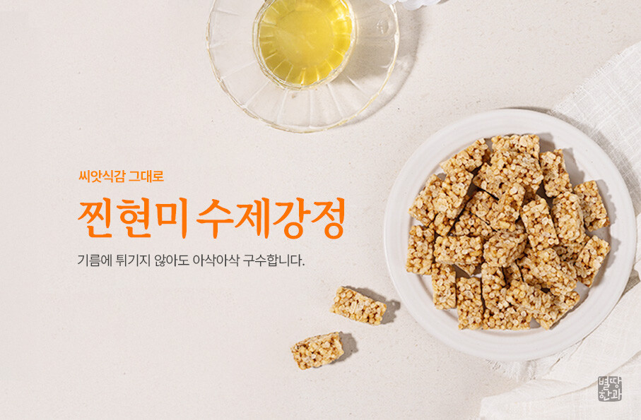 홍천 잣 강정을 중심으로 구성한 씨앗 강정 세트 4호, 검은깨 수제 강정, 검은콩 수제 강정, 들깨 수제 강정, 홍천 잣 수제 강정으로 별땅한과 인기 씨앗 강정을 모아 알차게 구성한 홍천 잣 씨앗 강정 세트