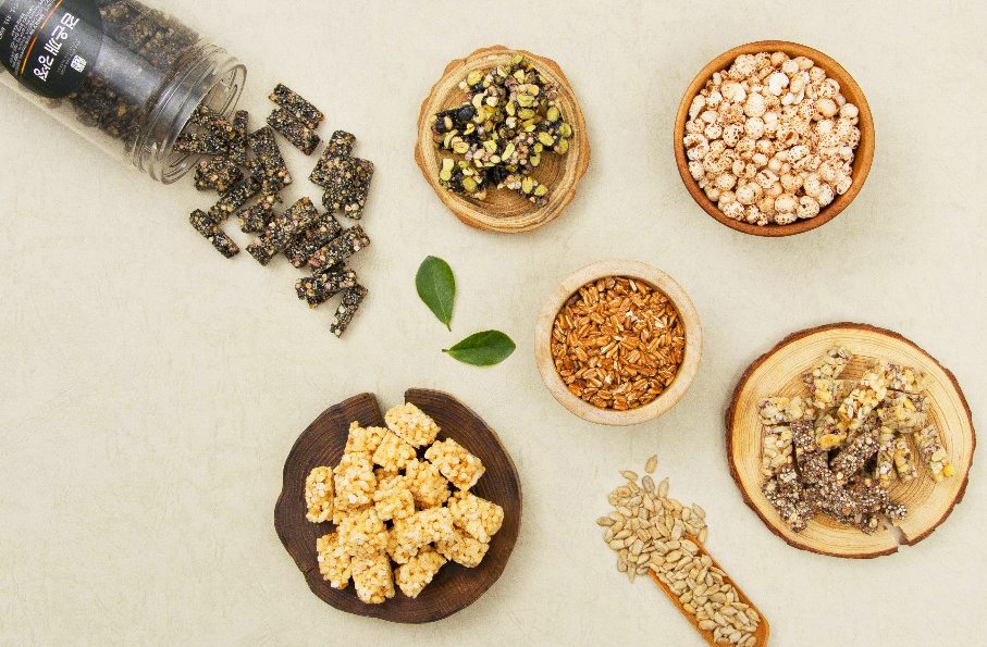 강원 홍천군의 특산품 잣에 잡곡을 더하다, 홍천 잣 강정과 찐현미 강정, 율무 강정 3종 구성으로 여러 가지 맛을 즐겨 보세요!