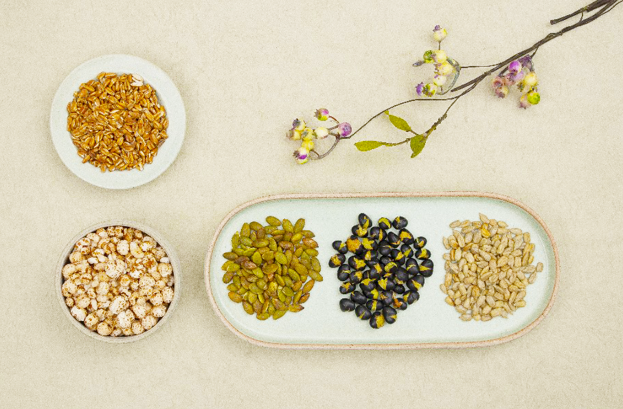 씨앗 강정과 찐 율무로 구성한 홍천 잣 씨앗 강정 세트 1호. 잣 강정, 검은콩 강정, 검은깨 강정, 들깨 강정, 찐 율무로 인기 있는 씨앗 강정은 물론 정성껏 쪄낸 율무까지 맛보실 수 있도록 구성했습니다.